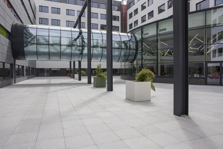Silver Grey granit este foarte rezistent la trafic, cu o textura fiamata si cu un ton de gri cu negru se incadraza bine la un design contemporan. Silver Grey granit este o alternativă fiabilă si economică.