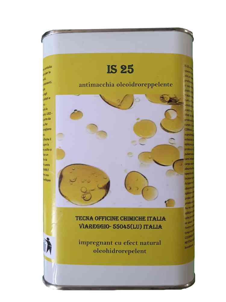 IS 25 este un impregnant protectiv cu un spectru larg impotriva petelor de ulei, vin, detergenti, etc. Se utilizeaza pentru protejarea blaturilor de bucatarie, mese, bai si suprafete plane sau verticale din marmura si granit. Acesta ofera suprafetelor tratate rezistenta la apa si la agentii externi cum ar fi ploile acide, smog, inghet si umiditate, pastrand culoarea naturala a acestora.
