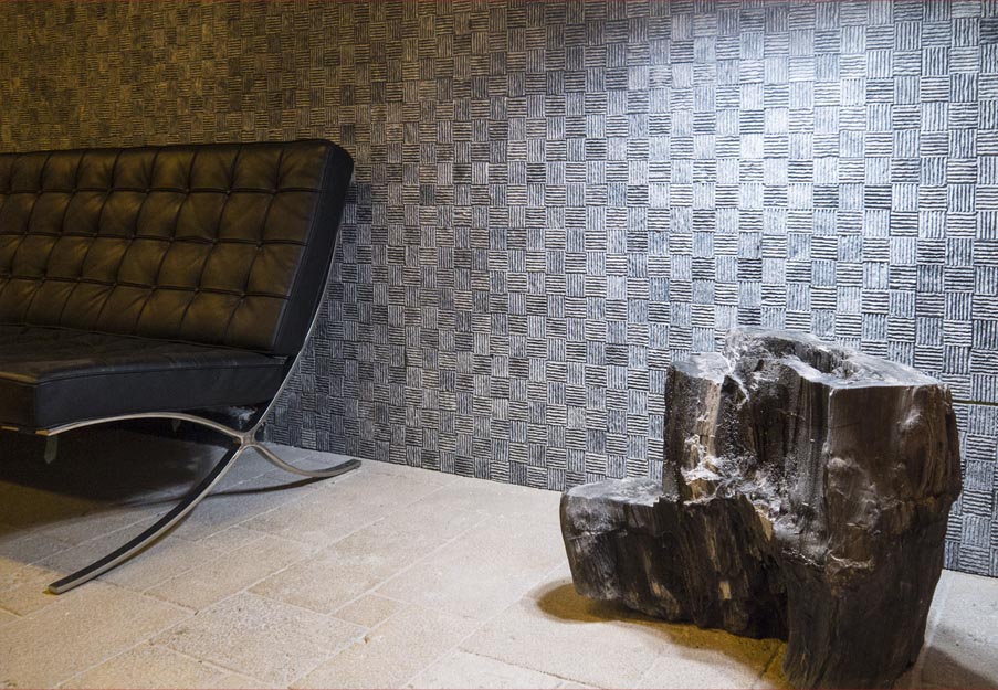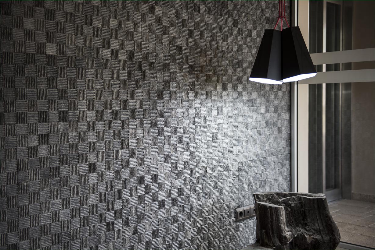 Mozaicul Dizzy Black este alcatuit din placute de 5x5cm, dispuse pe axa orizontala si cea verticala, prezentand rizuri  in adancime, creand astfel un aspect 3D.  Complexitatea pattern-ului  il face usor vizibil si accentueaza frumusetea spatiilor.  Non culoarea ii permite introducerea in orice tip de amenajare, fie clasica sau contemporana.