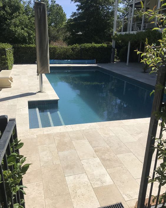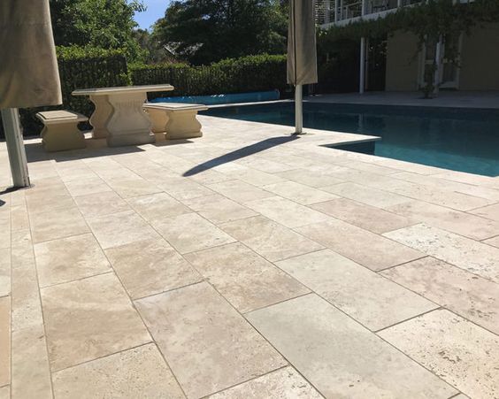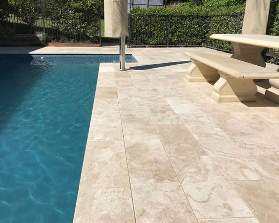 Disponibil in dimensiunile 60x40cm, cu o grosime de 3 cm, travertinul periat se preteaza mai ales spatiilor exterioare , expuse intemperiilor, atat pe alei, terase, piscine, cat si in zonele carosabile, posibil datorita grosimii. Fiind o roca foarte poroasa si absorbanta, este necesara impermeabilizarea acesteia, pentru a o proteja impotriva procselui inghet-dezghet, cat si petelor cauzate de acizi, uleiuri sau orice lichid ce ar putea pata. Finisajul periat ii permite folosirea la exterior cu incredere, fara a exista riscul de alunecare. Cu un ton caracteristic travertinului, poate fi inserat atat in spatii contemporane, cat si in cele cu nota clasica.